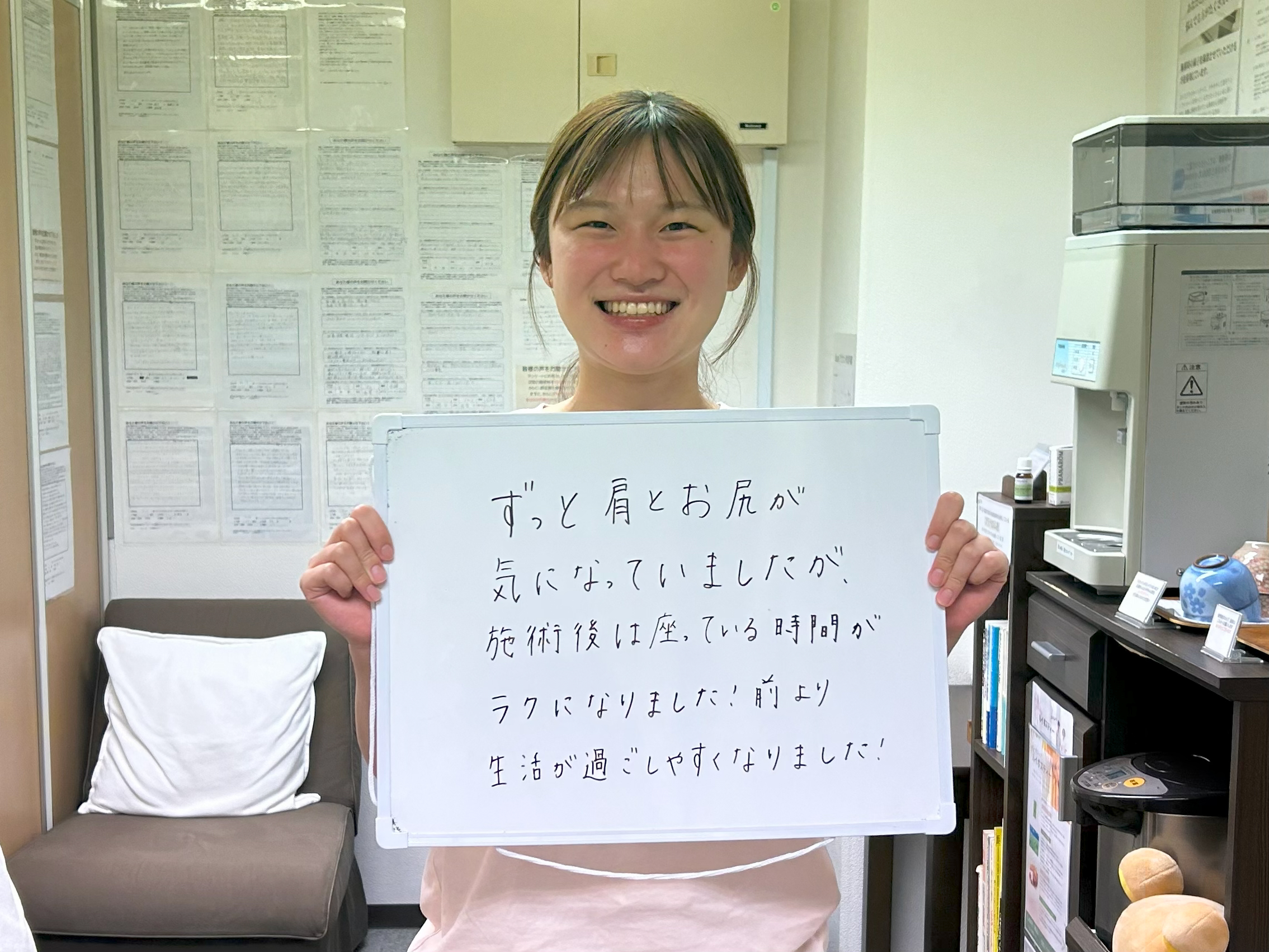 施術が終わった直後、「肩が軽くなった」「足の長さが揃ってびっくりした」「お尻が以前より痛くない」という率直な感想が多く寄せられます。