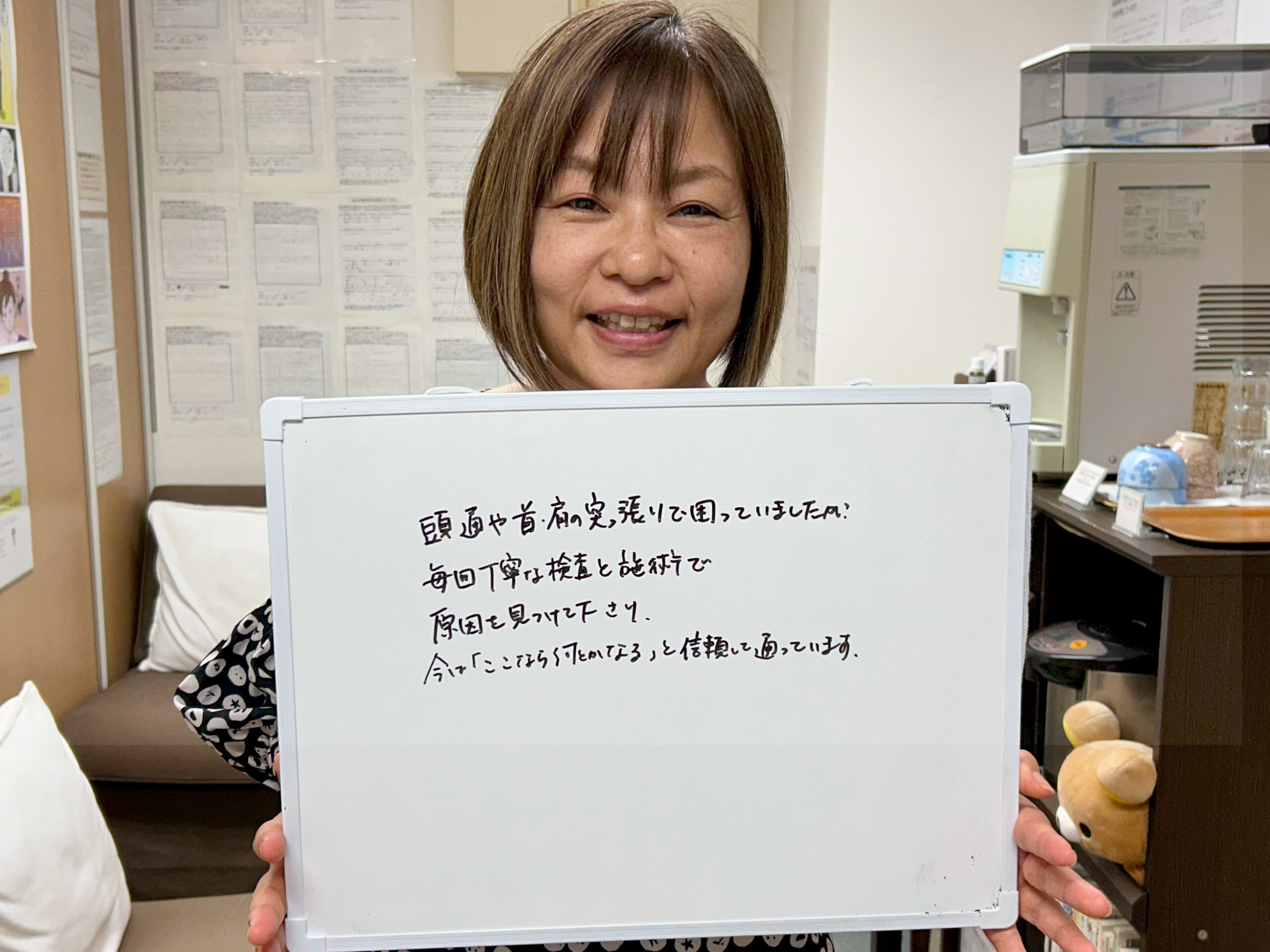 「枕を変えても、マッサージに行ってもすぐ元通り」に長く困っていたとのこと。