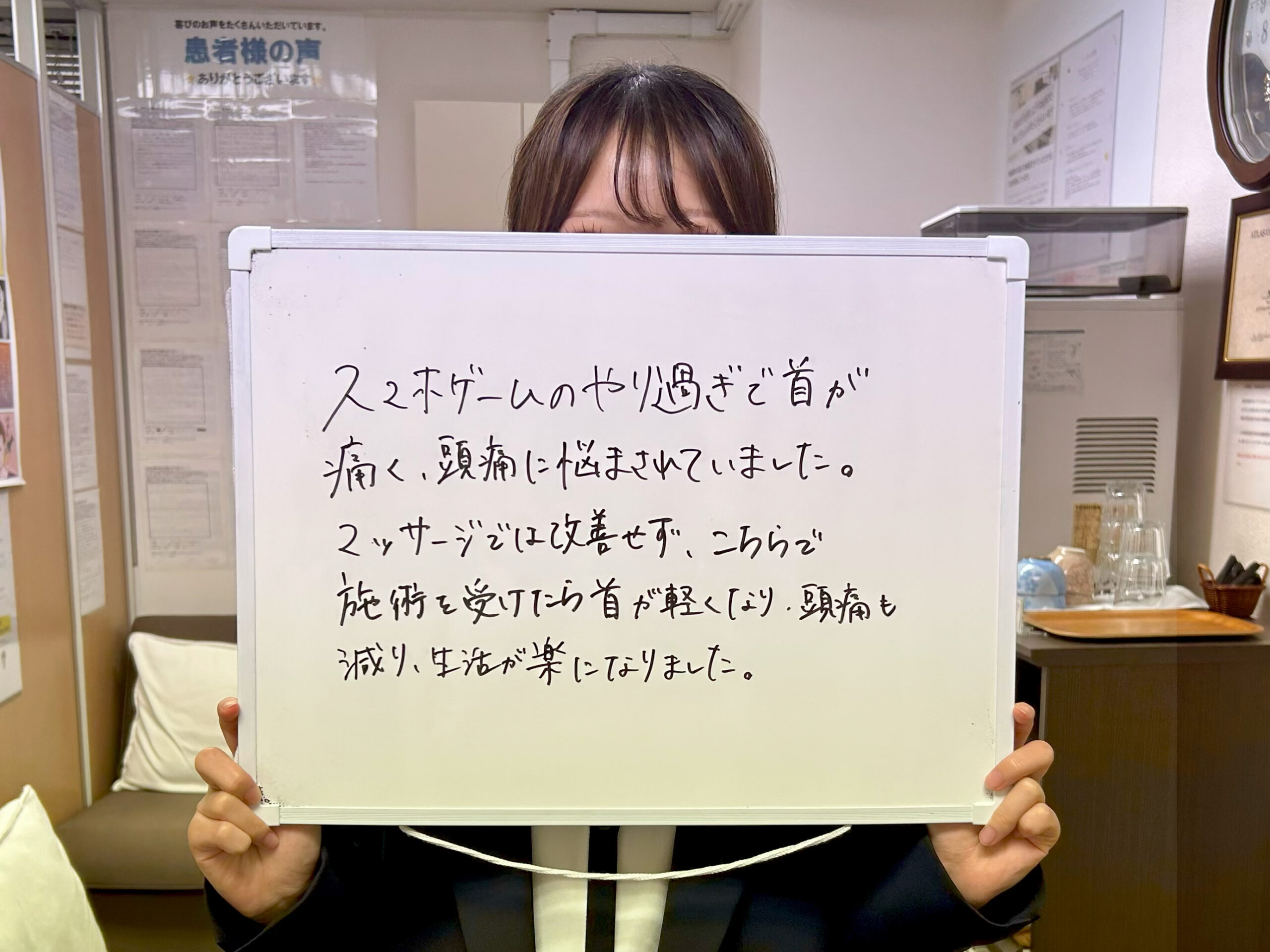 施術後は「普段から下を向きすぎないように意識できるようになった」と語る方も多数。